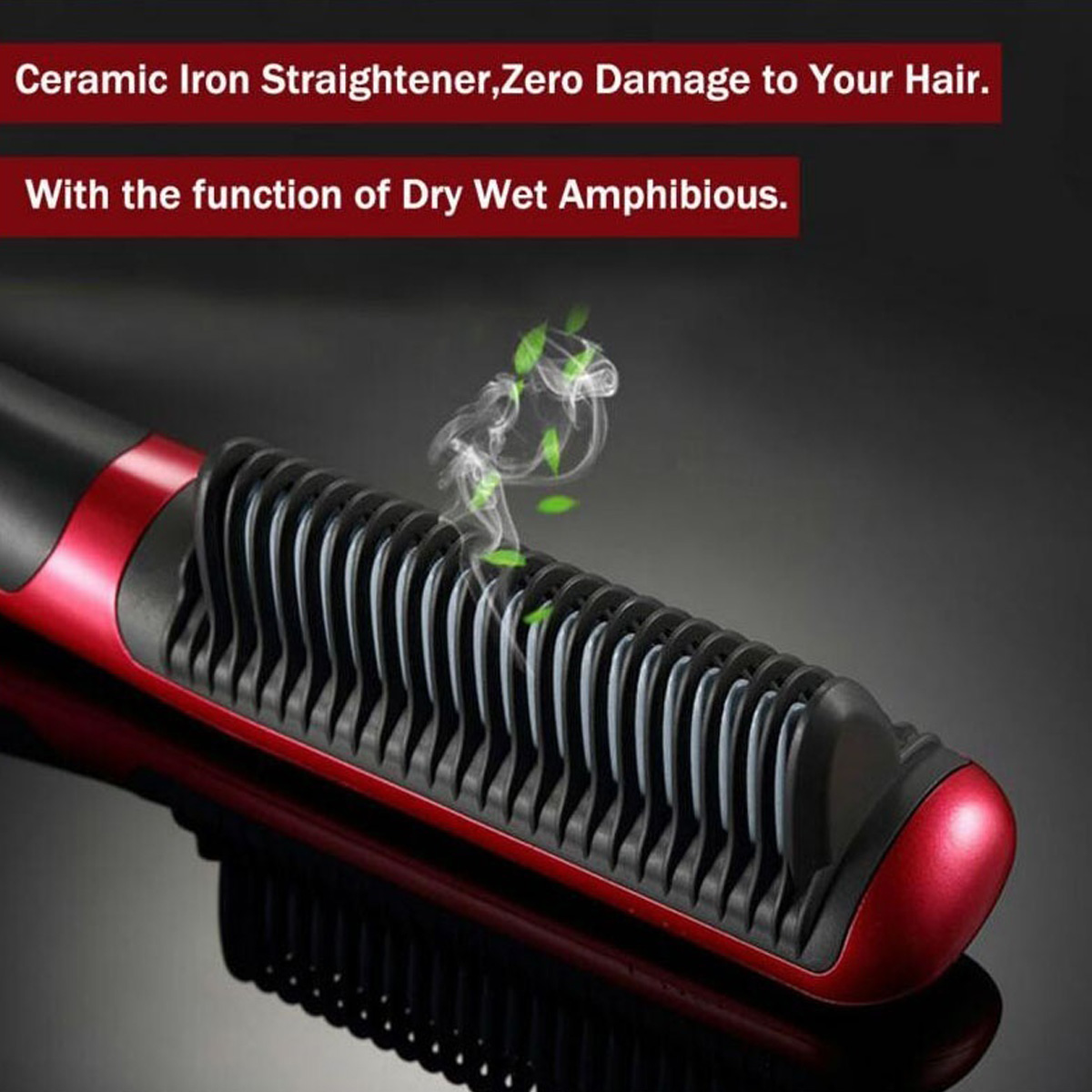 Lisseur cheveux Durable électrique droit cheveux peigne brosse LCD chauffé en céramique cheveux redressage brosse EU Plug